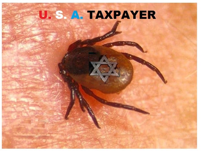 THIS TICK HAS BEEN ATTACHED TO OUR PRESIDENT AND CONGRESS SINCE 1948 SPREADING ZIONISM AT THE TAXPAYER’S EXPENSE!!!